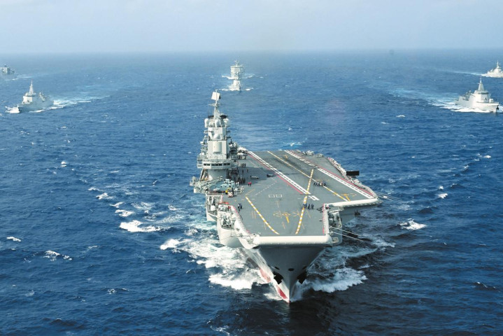 当时辽宁舰编队正在琉球以东海域进行训练,编队里有055型驱逐舰南昌舰、052D型驱逐舰西宁舰和贵阳舰,都是海军的主力舰艇。